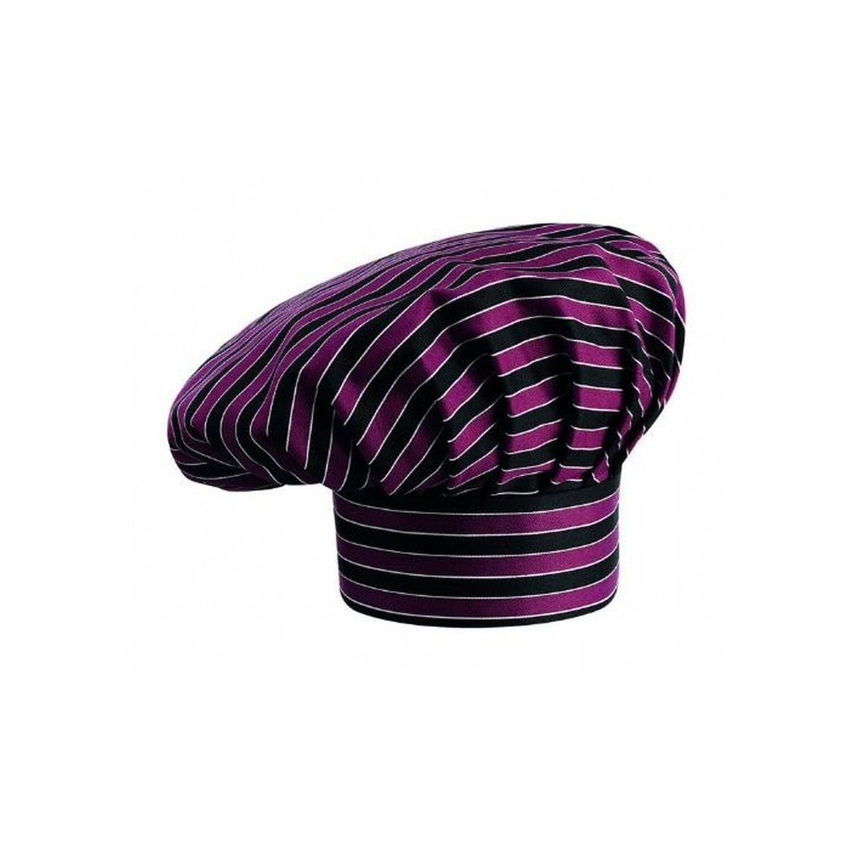 Cappello cuoco, modello classico, regolabile con velcro,tessuto 100% cotone, colore base nero, in fantasia Red Stripe.