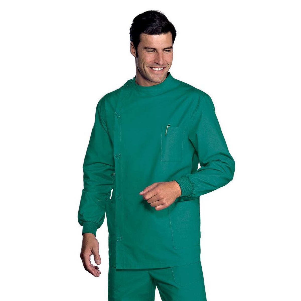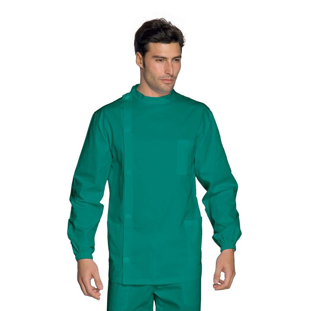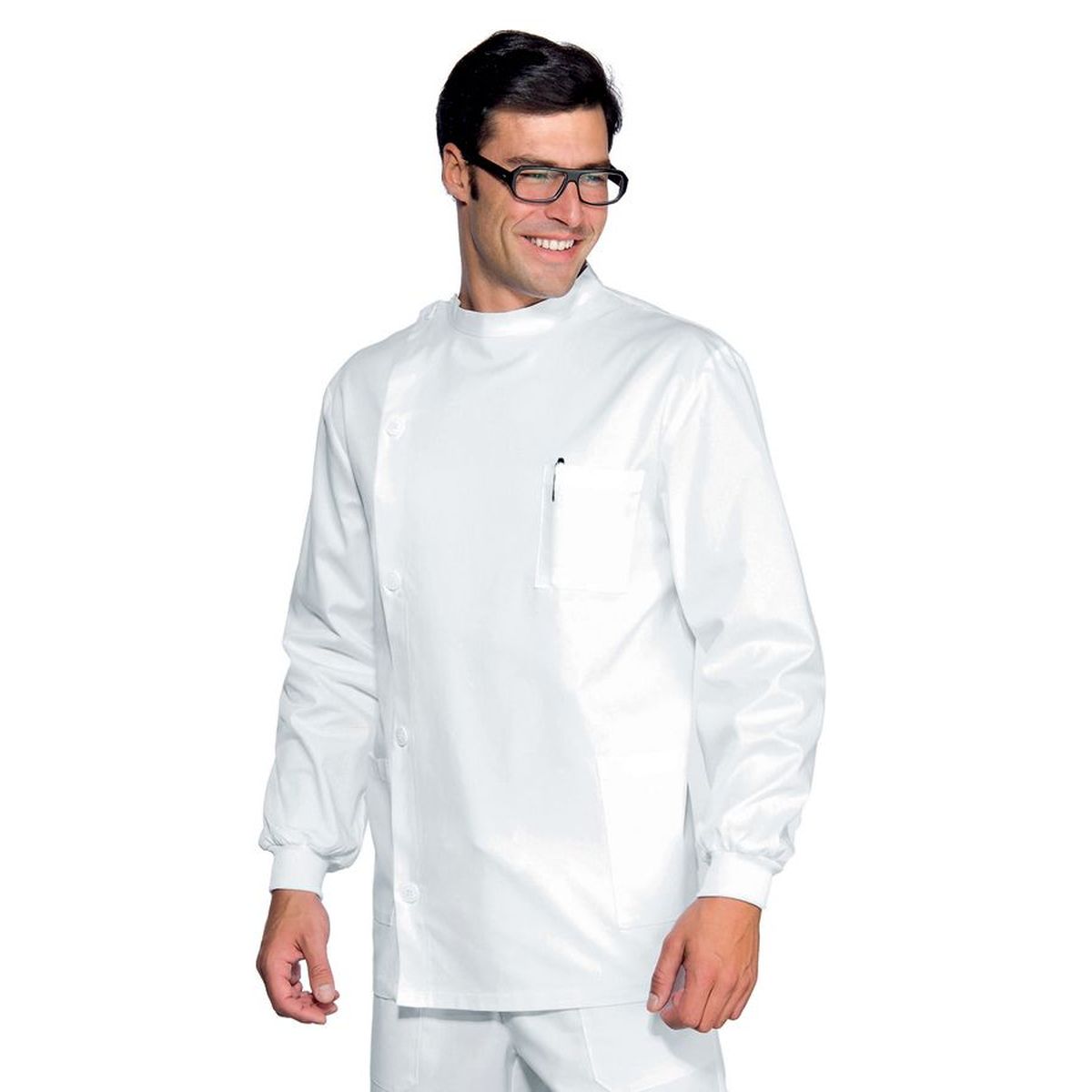 - Casacca con vestibilità unisex, con pratico scollo a V (leggermente accavallato), - in fresco tessuto 100% cotone, peso tessuto 190 gr/mq, - colore bianco, manica corta e 2 tasche, spacchetti laterali, tipo infermiere,