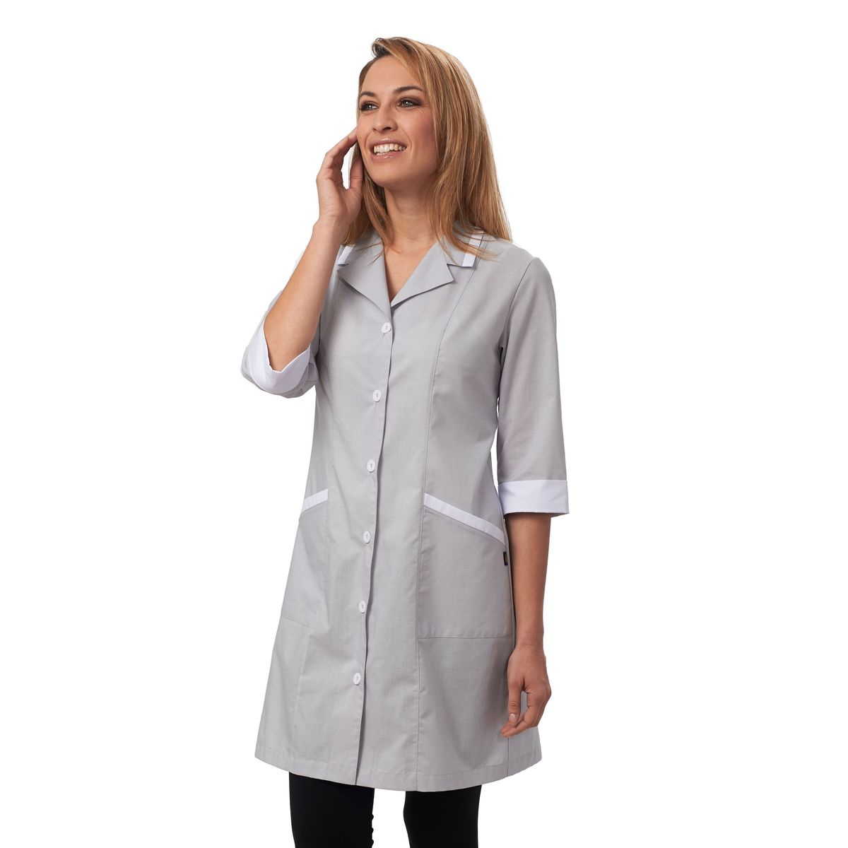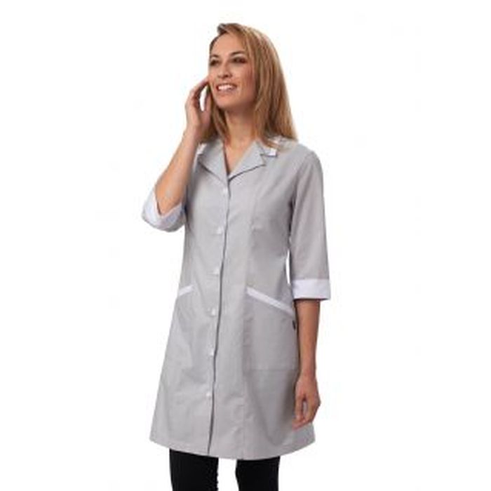 Camice donna, manica 3/4,leggermente sancrata, inserti in contrasto bianchi,