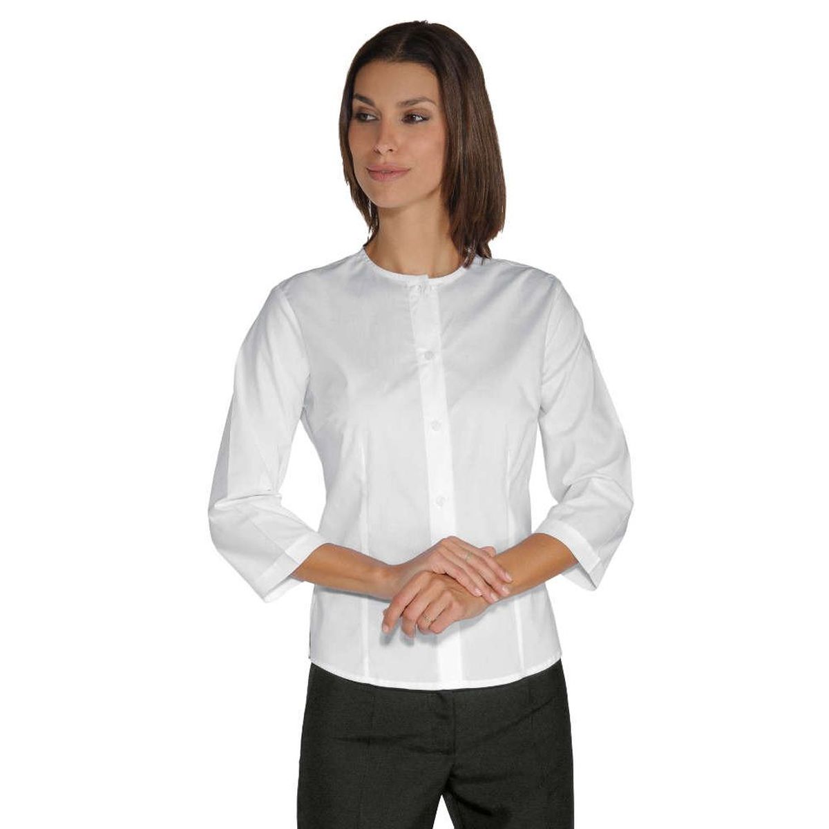 Camicetta donna, collo rotondo senza colletto, manica corta,manica o manica 3/4,con spacchetti laterali,