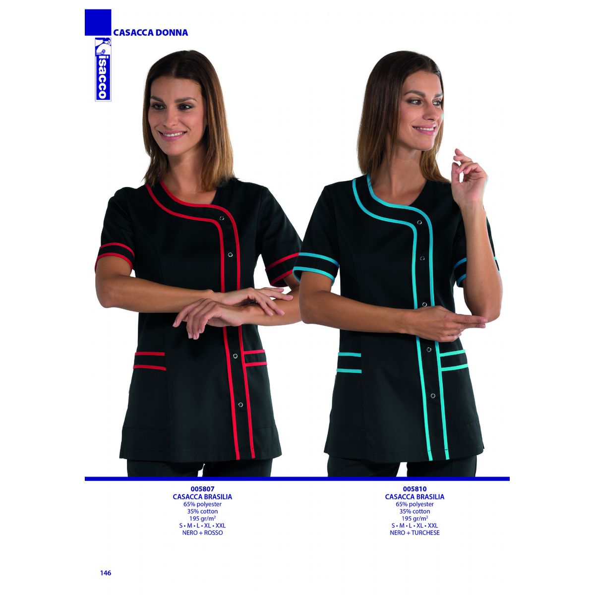 Casacca donna, modello con ottima vestibilita' e linea leggermente sancrata, - bottoni a pressione, manica corta - tessuto 65% poliestere 35% cotone, 195 gr/m² -