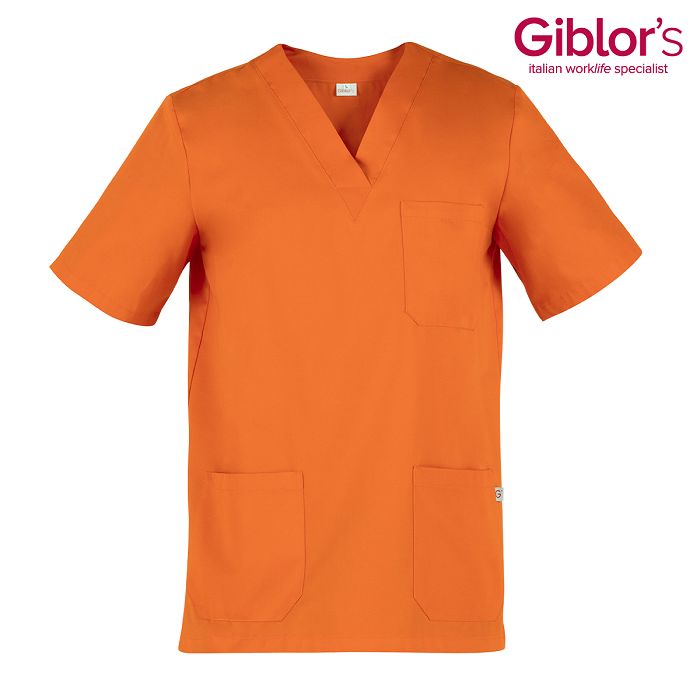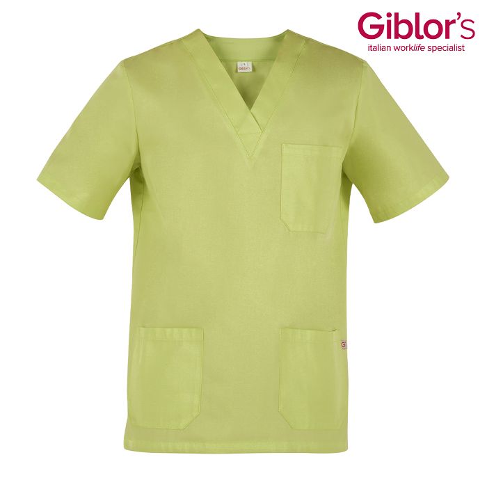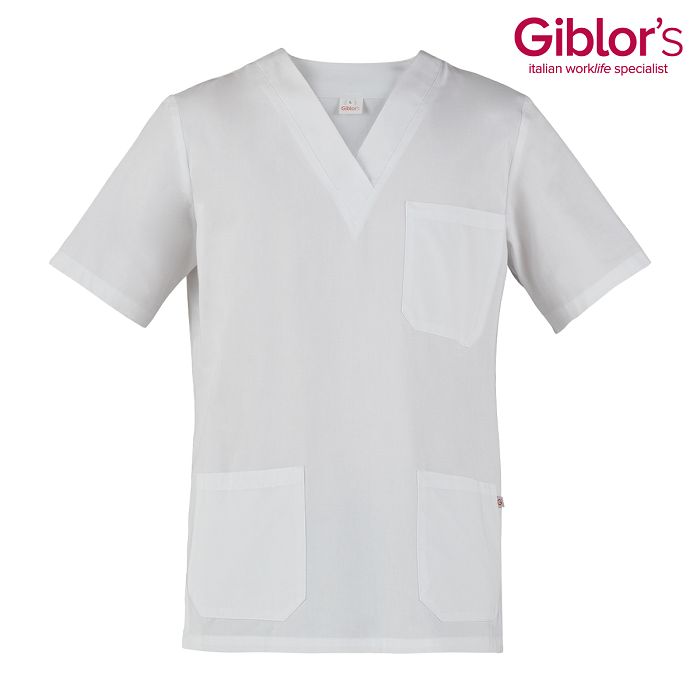 - Casacca con vestibilità unisex, con pratico scollo a V (leggermente accavallato), - in fresco tessuto 100% cotone, peso tessuto 190 gr/mq, - colore bianco, manica corta e 2 tasche, spacchetti laterali, tipo infermiere,