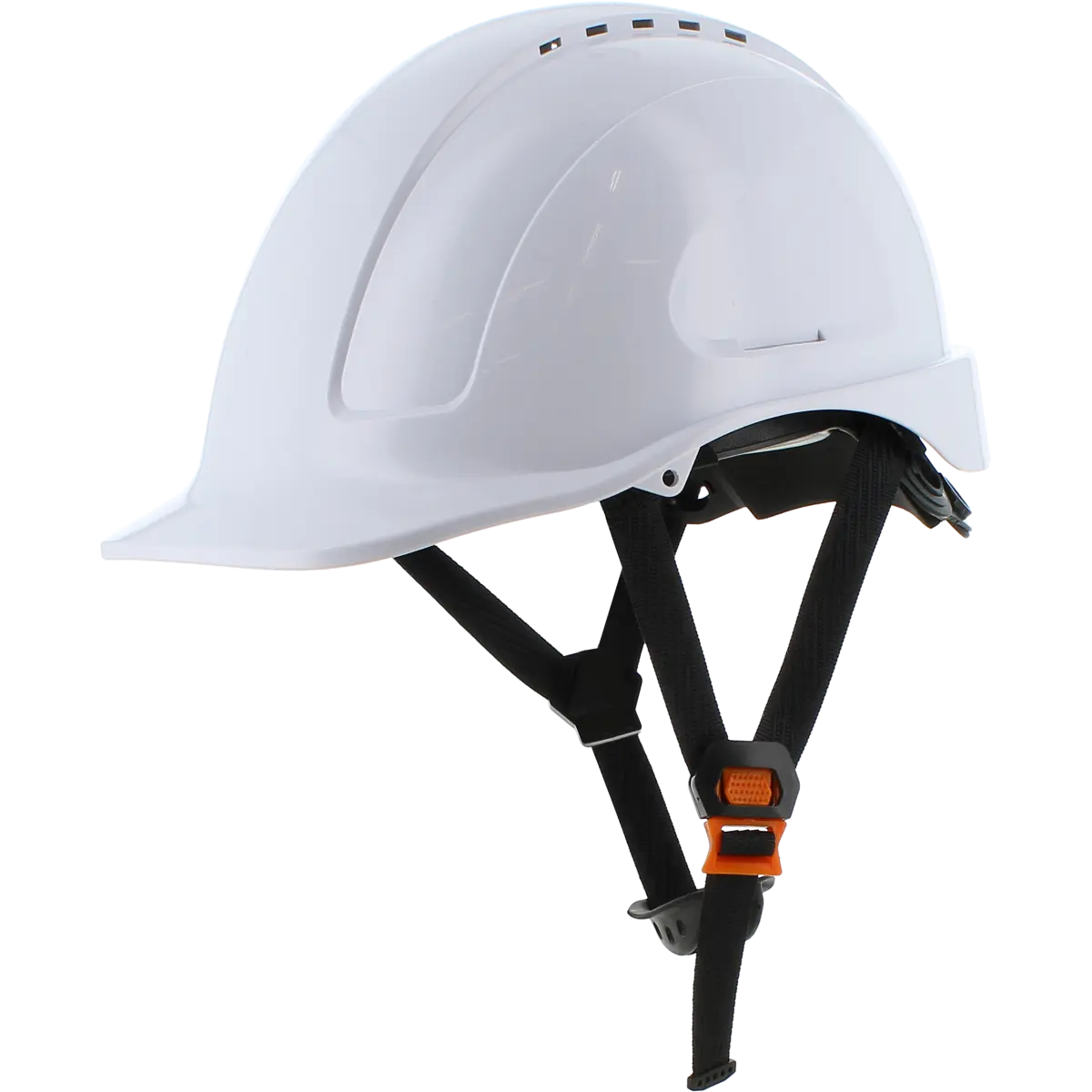 L'elmetto di sicurezza AJUSCO CHINSTRAP con calotta ventilata in ABS offre una protezione affidabile in un design robusto e leggero. Il casco è dotato di una mentoniera rimovibile a 4 punti con una mentoniera in gomma morbida e di una comoda bardatura in tessuto a 6 punti. La fascia per la testa può essere facilmente regolata nelle dimensioni grazie a un sistema a cricchetto. Compatibile con le protezioni auricolari ETOSHA II DETACHABLE per una maggiore protezione dell'udito.