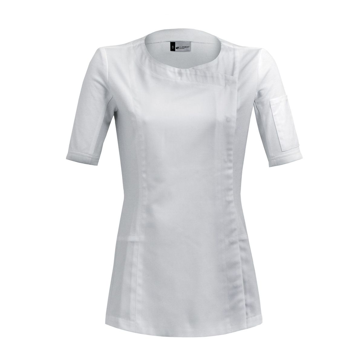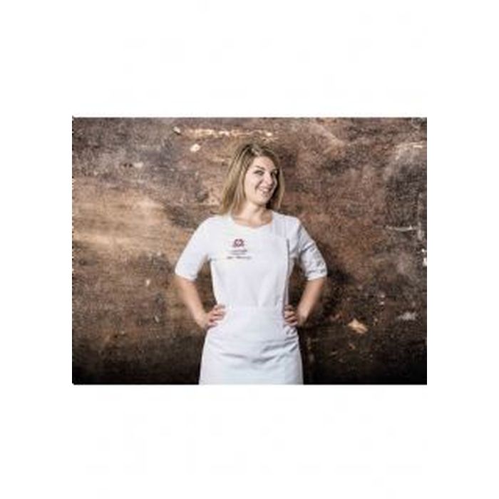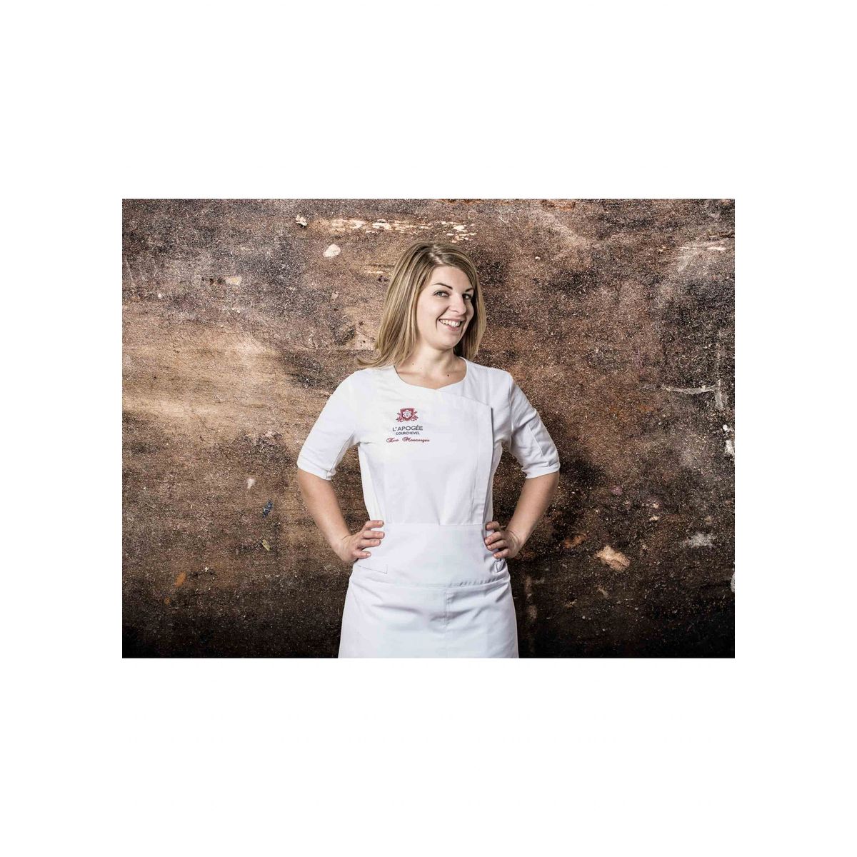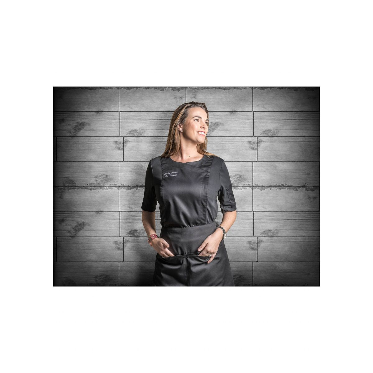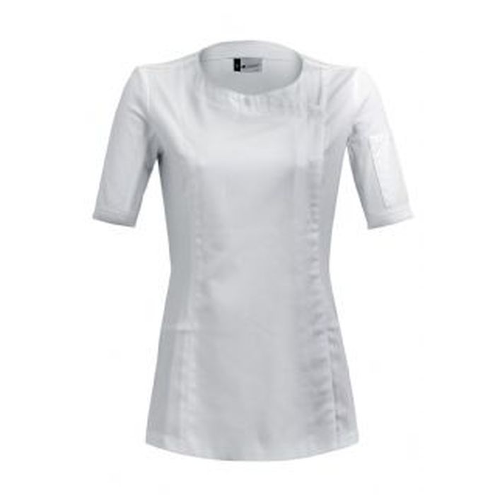 Giacca cuoco con scollatura a V incrociata sul davanti. Bottoni a pressione nascosti, taschino per penna sulla manica sinistra, spacchi laterali.