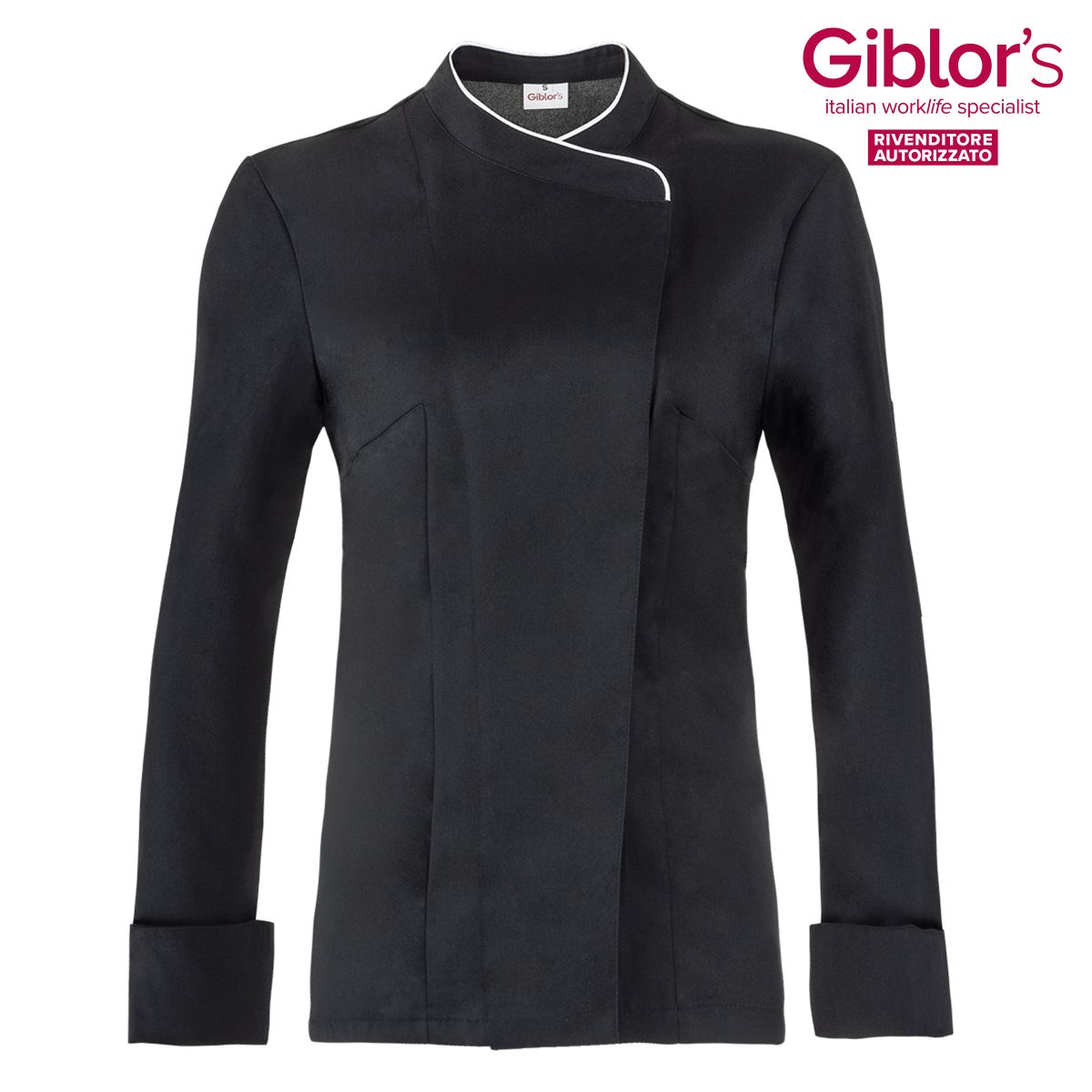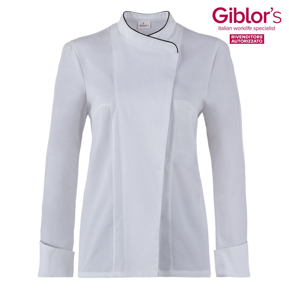 Giacca cuoco donna Giblors Rose manica lunga, bottoni a pressione, taschino sul petto, taschino portapenne sulla manica, rete sulla schiena e nel sottomanica