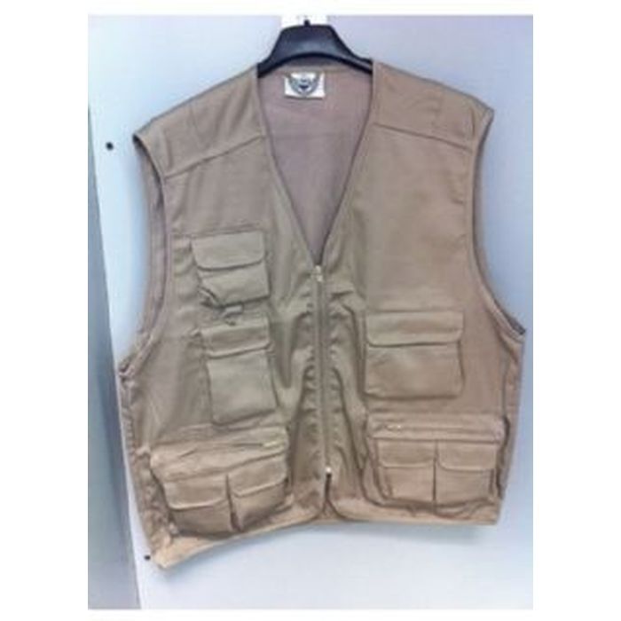 Gilet REPORTER "ACTIWEAR", multitasche, tessuto 65% cotone, 35% poliestere, fodera interna in retina. Chiusura con zip centrale, 9 tasche davanti e 2 nel retro. Confezione in nylon.