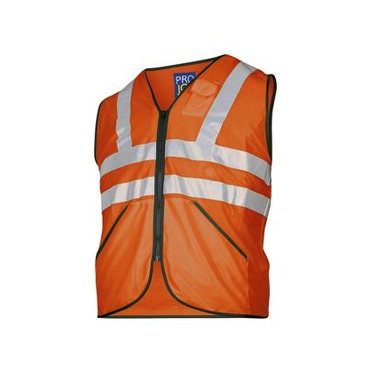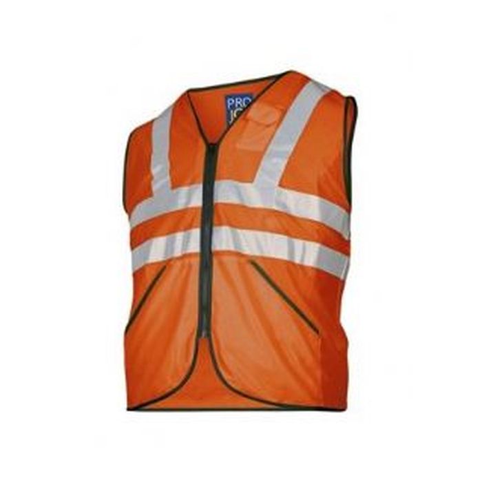 Gillet alta visibilità 100% poliestere con bande rinfrangenti, taschino portacellulare, due tasche laterali, chiusura a cerniera.