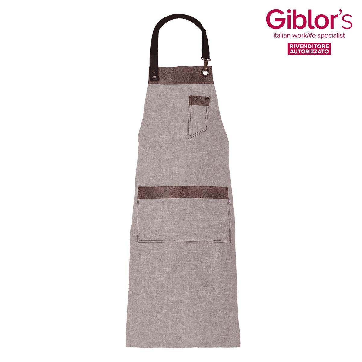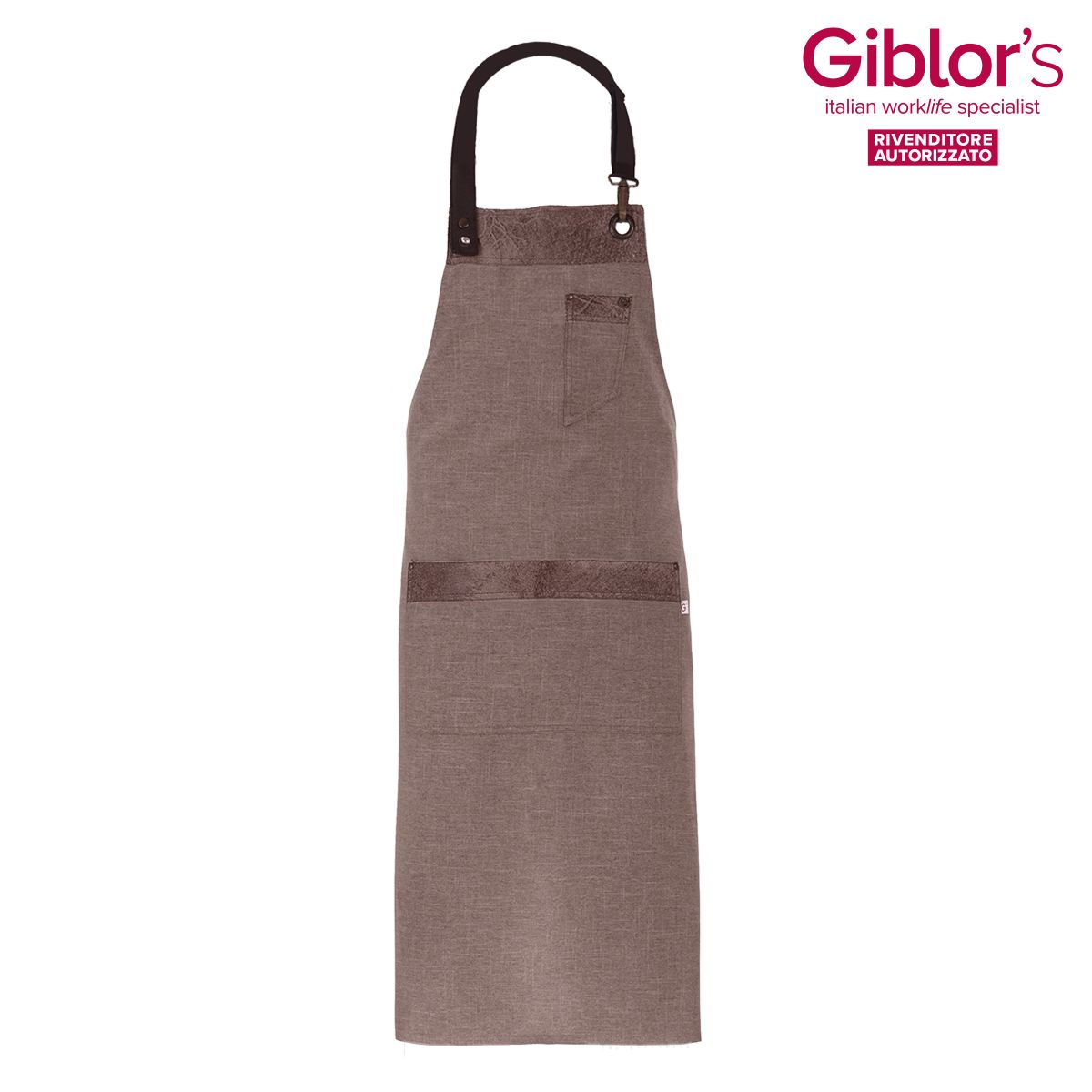 Grembiule pettorina Tropez, 2 tasche, taschino portapenne, allacciatura al collo regolabile, inserti in alcantara, anello porta torcione - Tessuto e colore:beige, marrone, grigio - 100% poliestere 170 gr/m² - Taglia unica