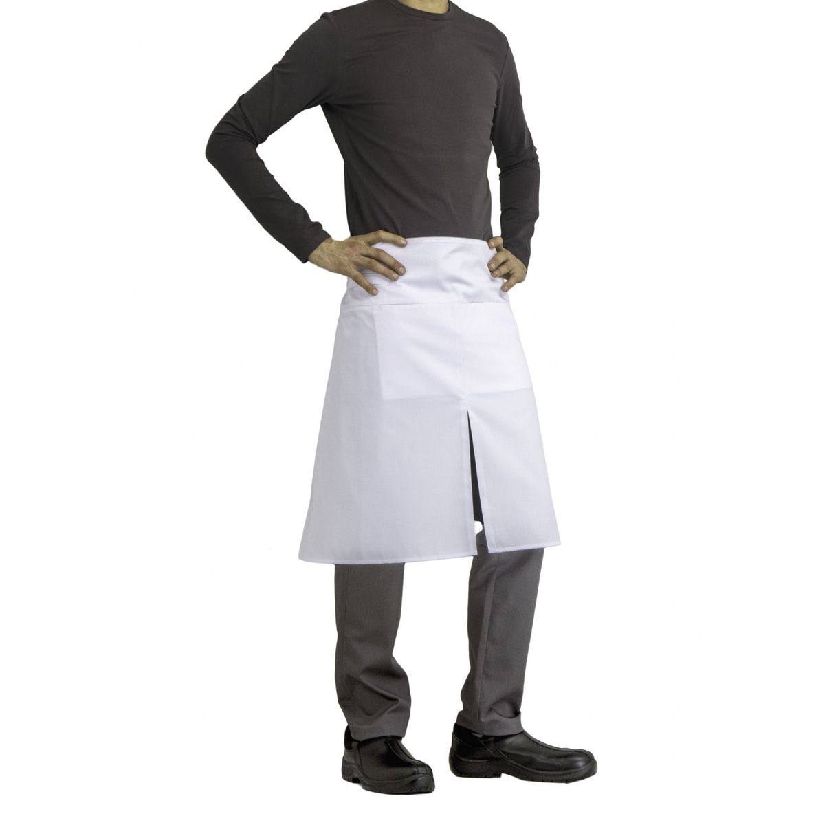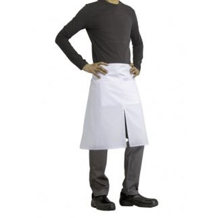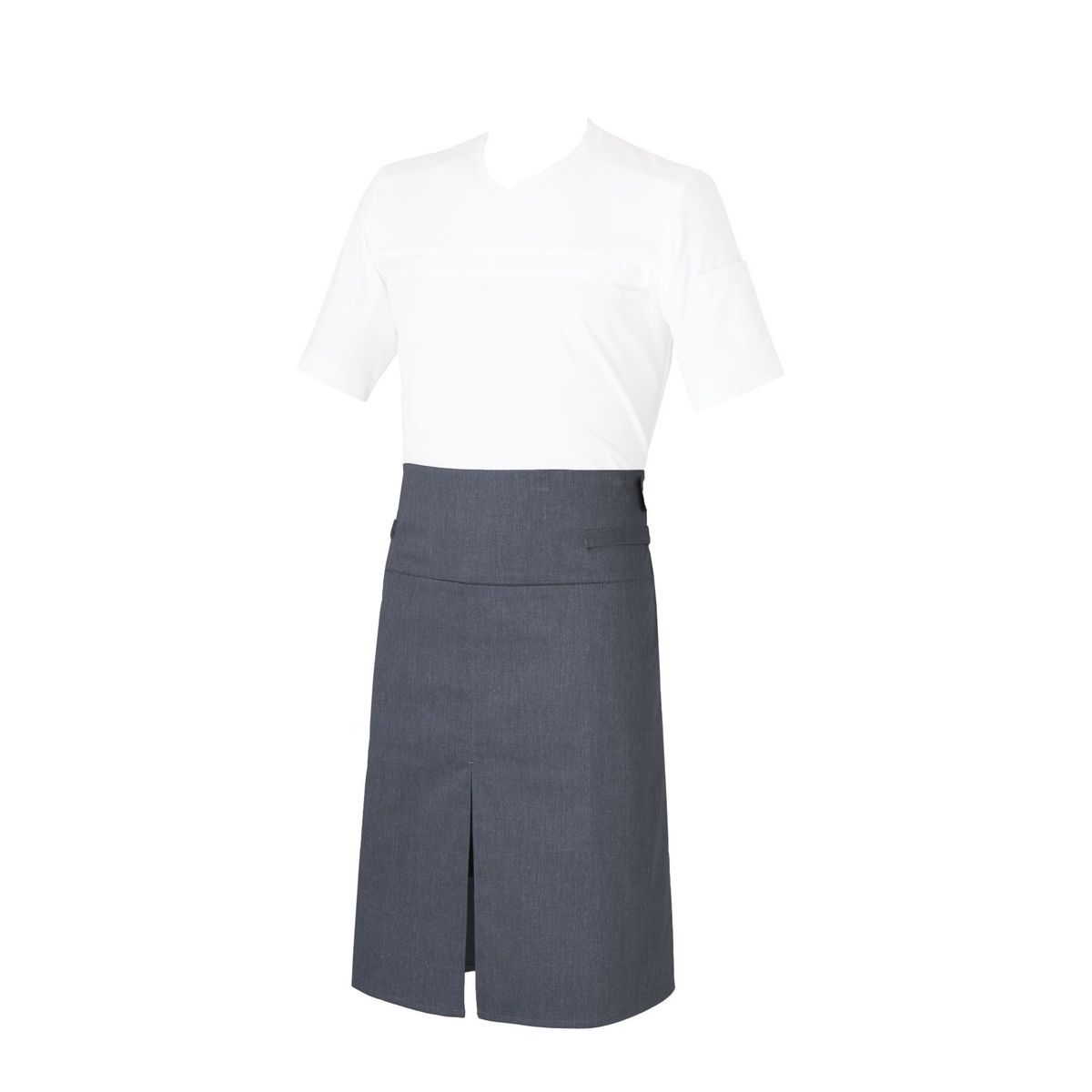 Grembiule con spacco centrale davanti. Sistema di chiusuraspeed-belt. Tasca canguro sotto la cintura. Passante per canovaccio.