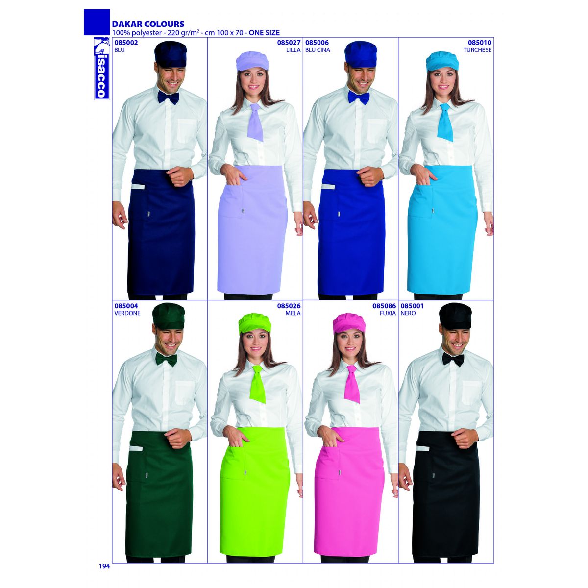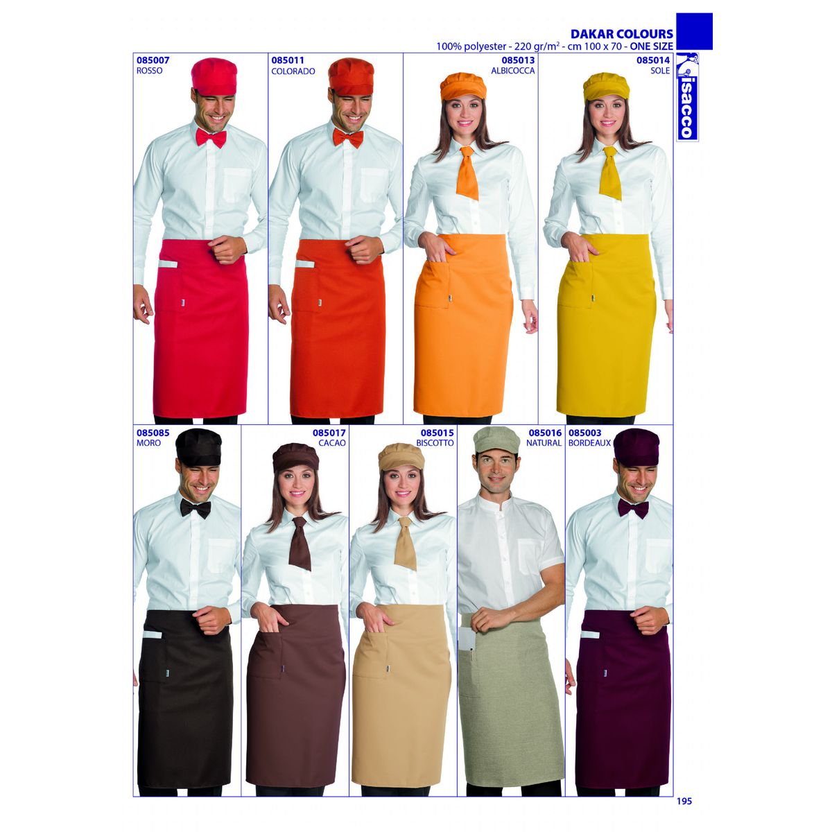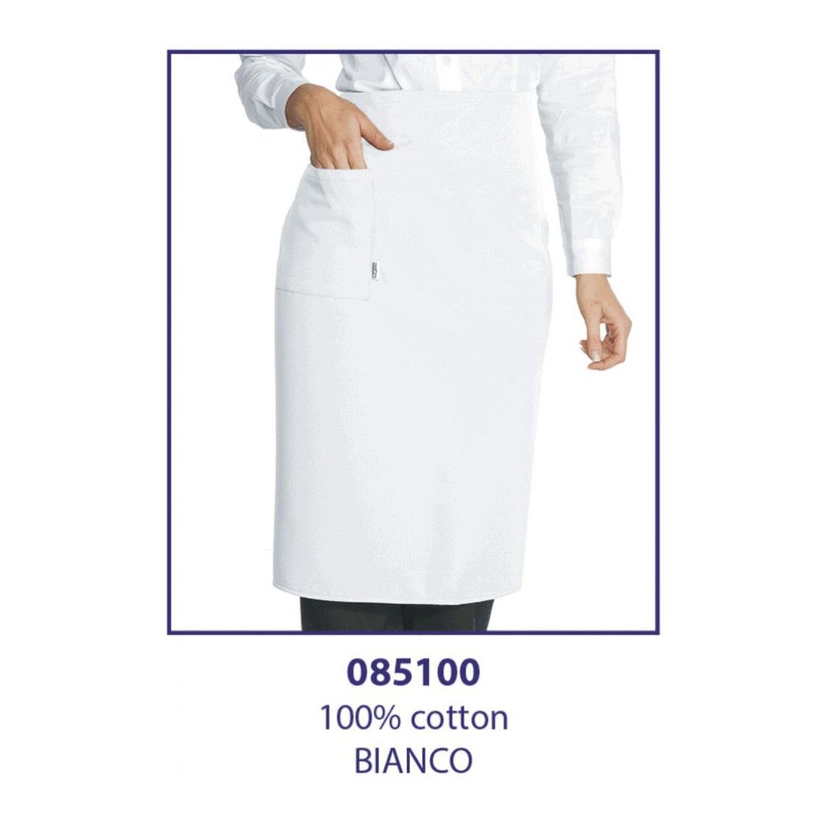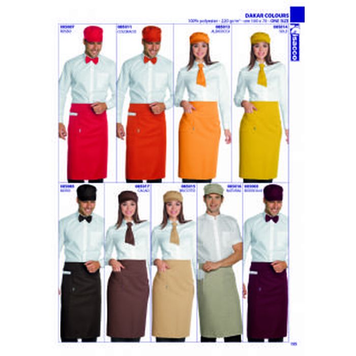 - Grembiule vita lungo, misure 92x88 cm, due ampie tasche, senza spacco. - tessuto 100% poliestere antimacchia peso da 170 a 220 gr/mq, - Taglia unica -