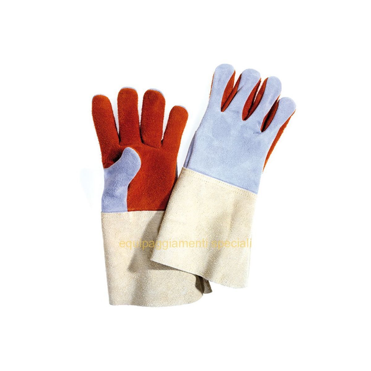Guanti da saldatura lunghi 35 cm con palmo in crosta termica e dorso in crosta naturale.