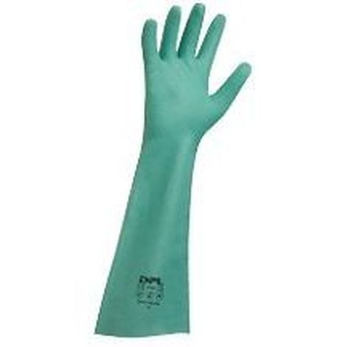 Descrizione: guanto sintetico riusabile extra lungo in acrilonitrile e butadine polimero, clorinato esterno/interno