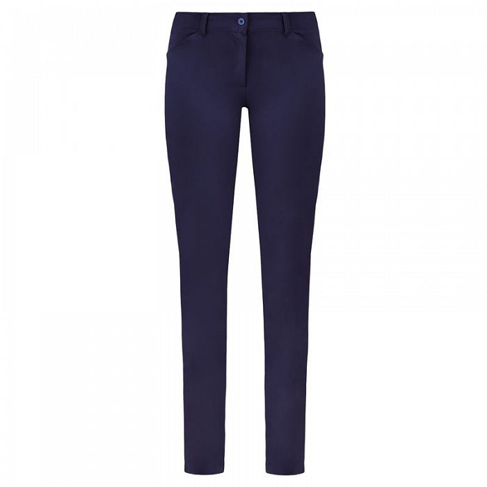 Pantalone donna Giblor's Giulia, due tasche, elastico nel fascione, passanti per cintura, fondo stretto, chiusura con zip e bottone - Tessuto: 50% lyocell 50%poliestere 200 gr/m² (TENCEL®) - Colore: bianco, blu, pistacchio, prugna - Taglie: XS - XXL