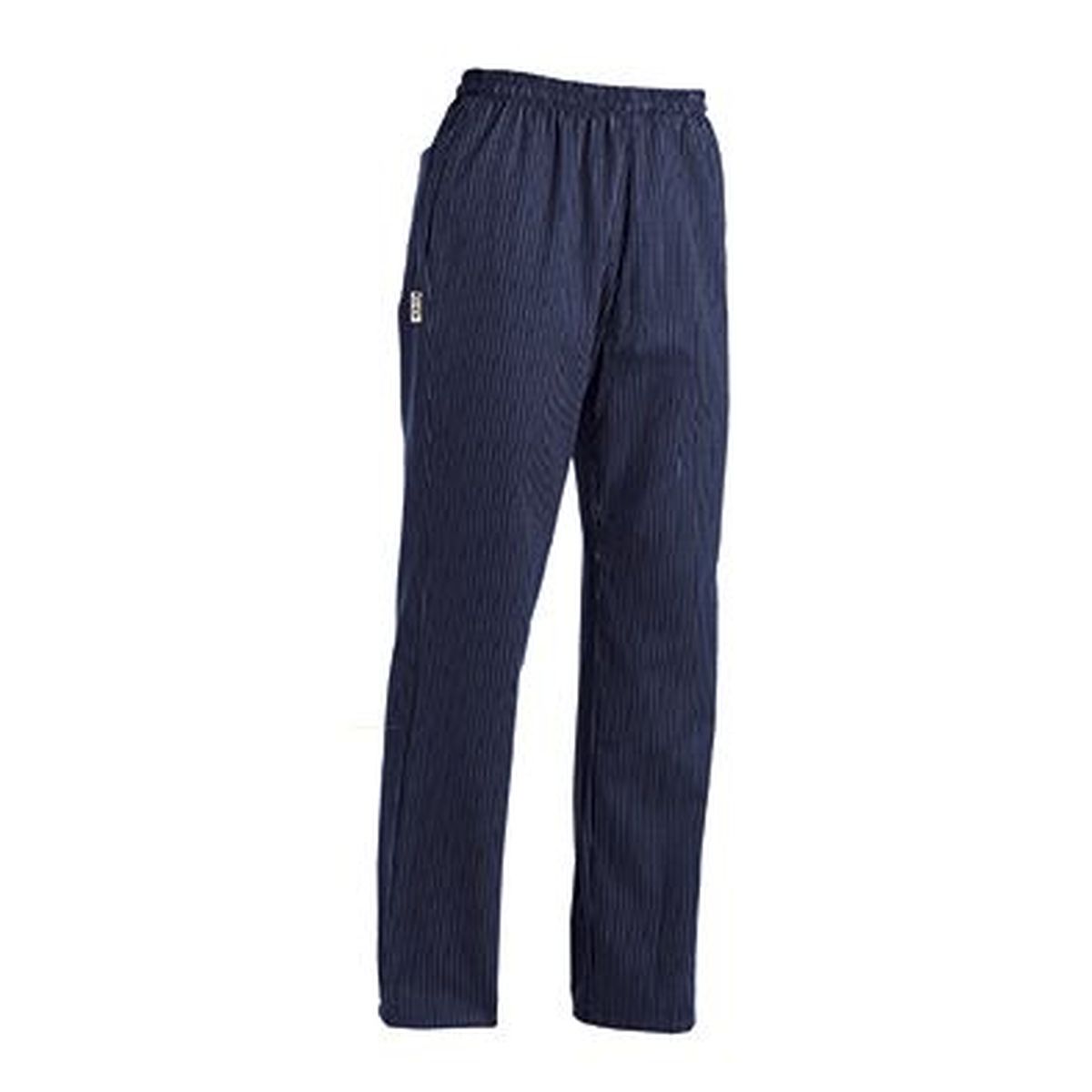 Pantalone con ottima vestibilità unisex, con elastico in vita, tasca posteriore e tasche laterali tessuto 65% poliestere 35% cotone, peso 150 gr/mq colore FRANCE (blu a righe bianche)