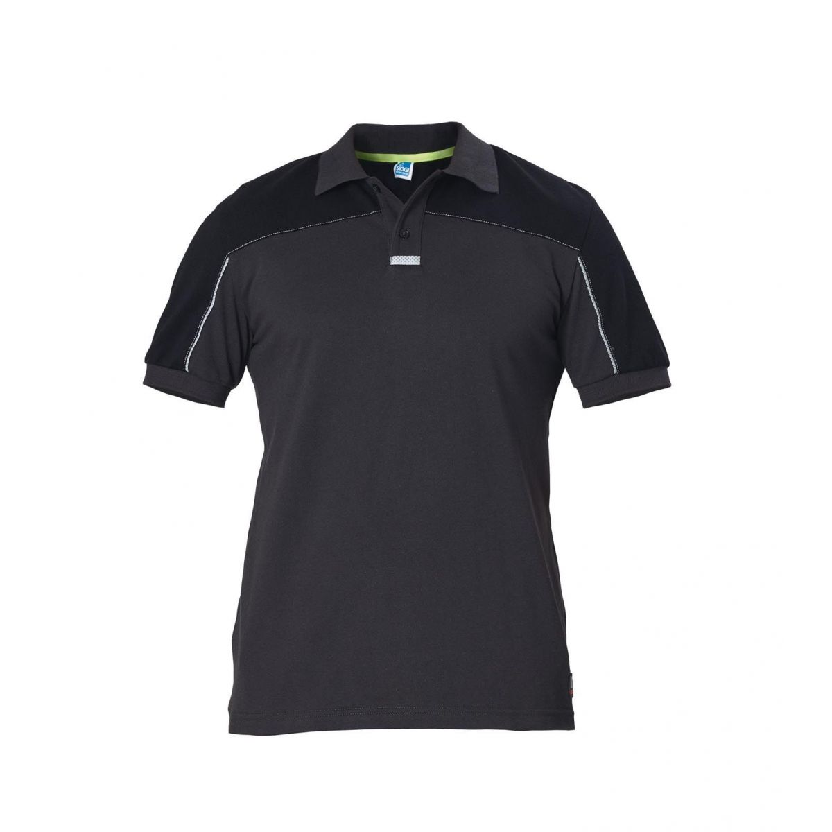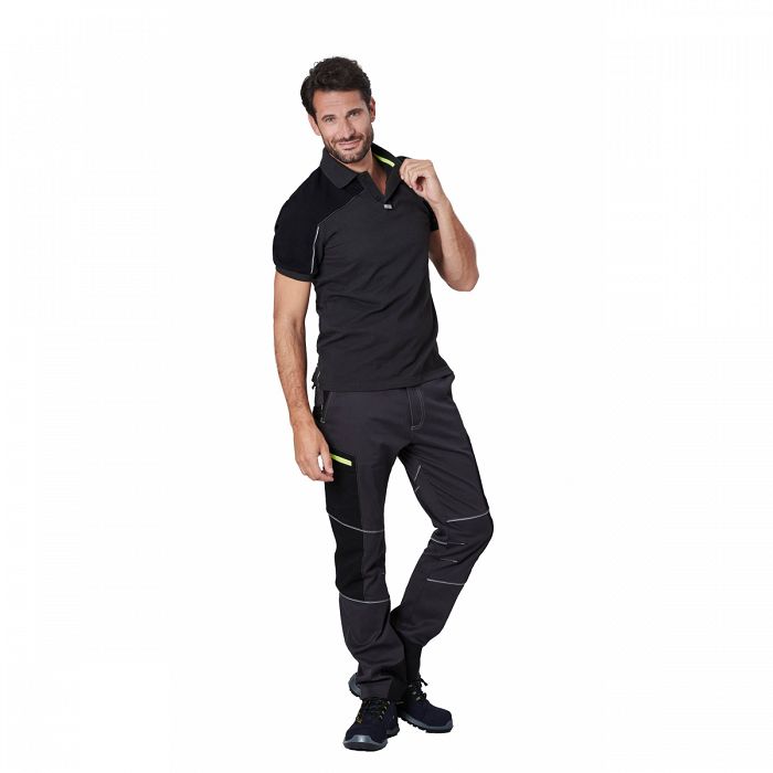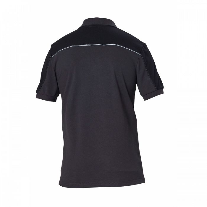 polo Zeta ,collo e fondo manica in costina .Fettuccia parasudore interno collo colore fluo.Fettuccia reflex portapenne,portaocchiali sul davanti.Piping reflex sul carrè dietro ,maniche e fianchi.Tessuto in contrasto su maniche e spalle