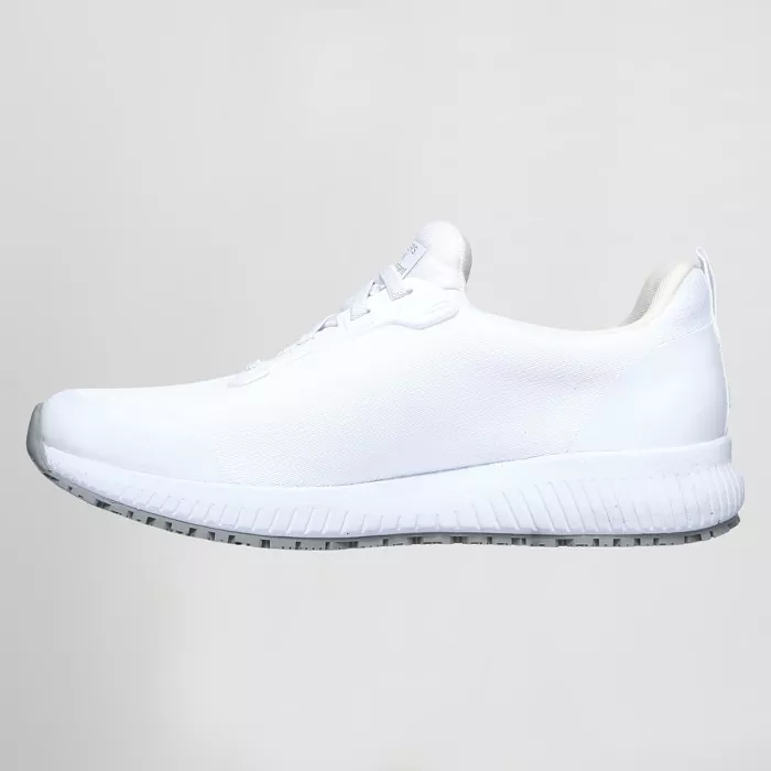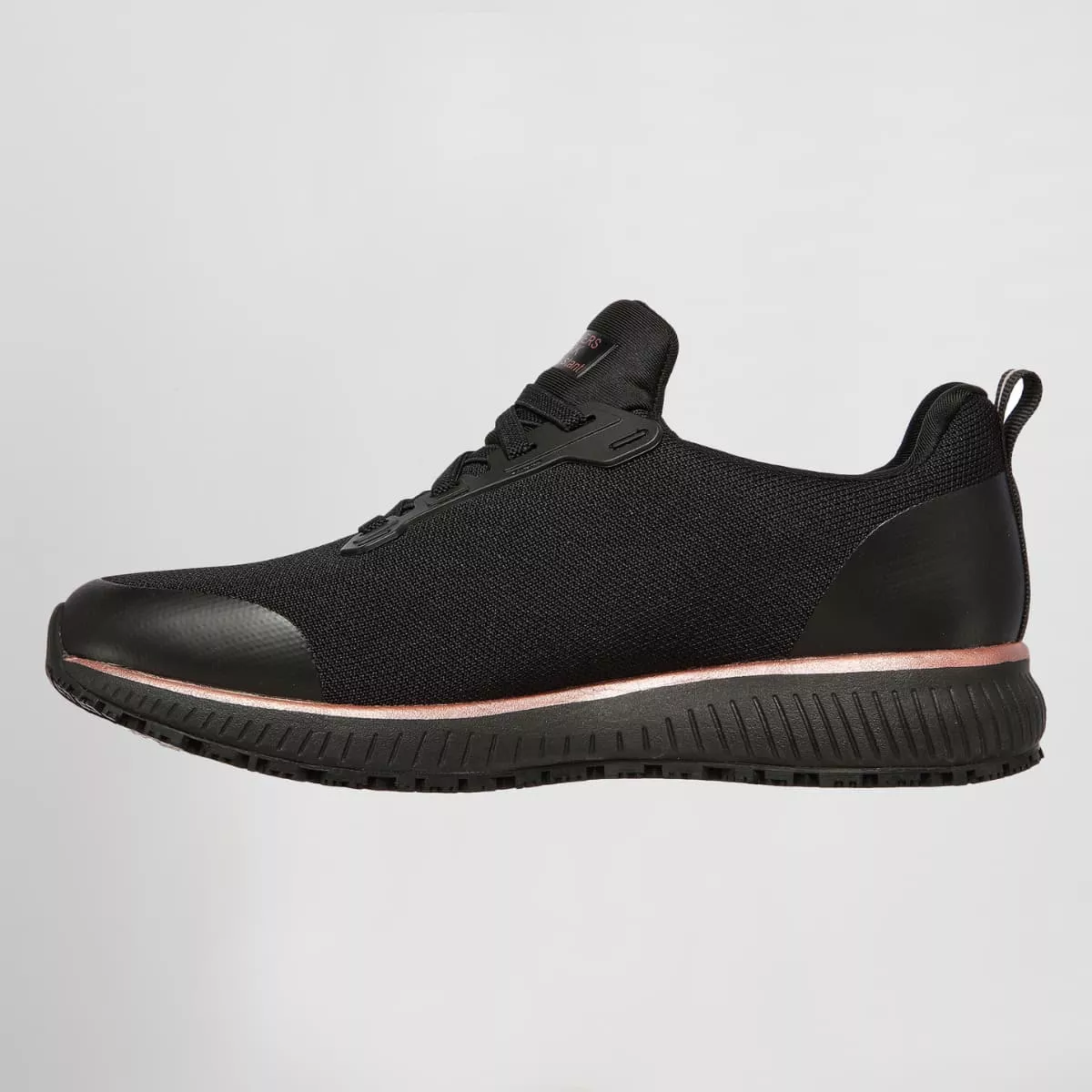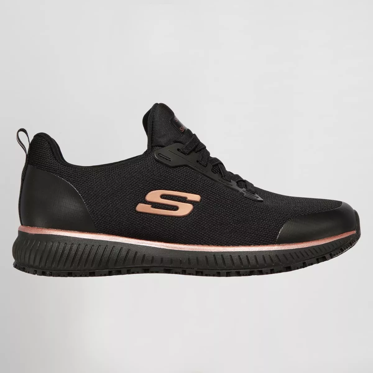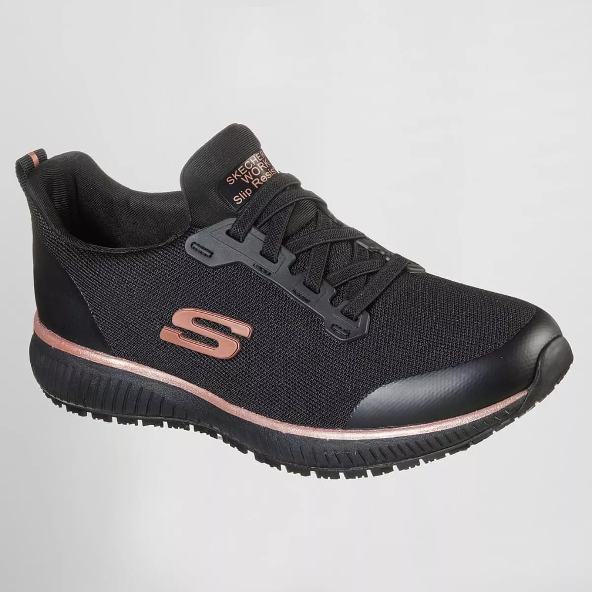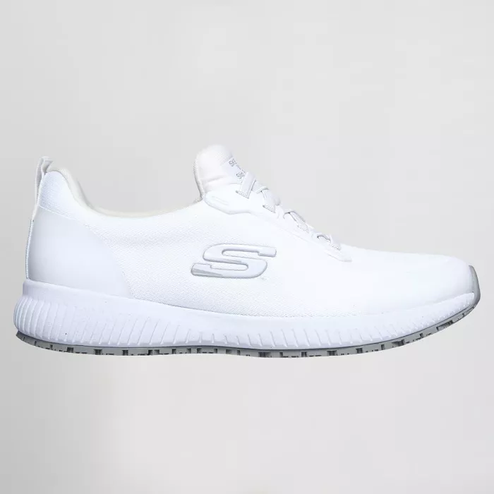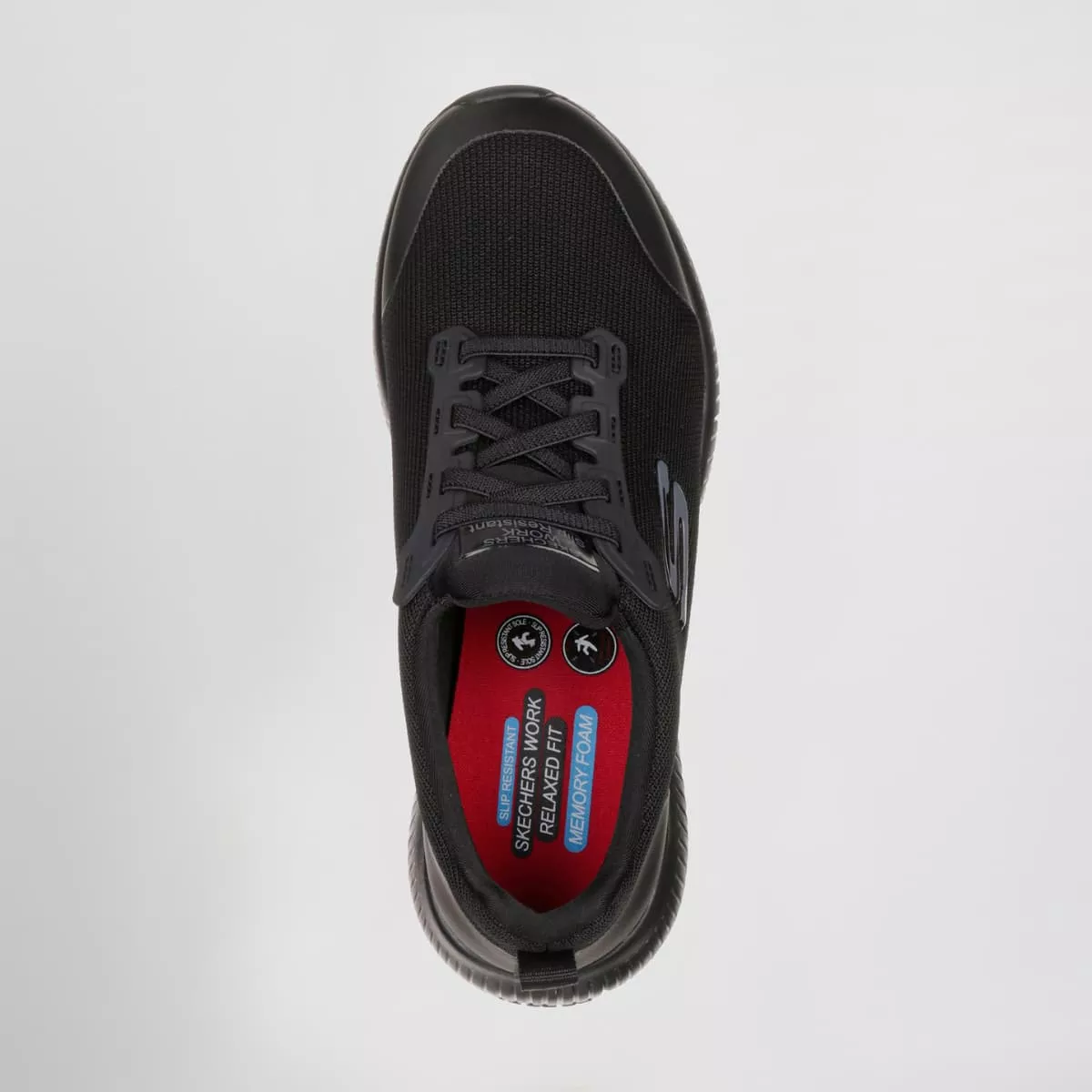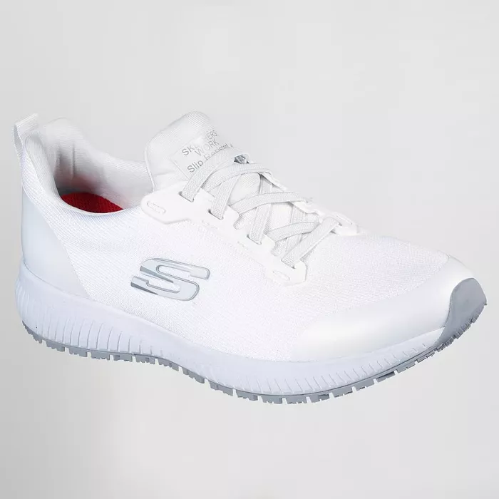 Skechers Squad SR presenta protezione e comfort. La tomaia sintetica e in rete fornisce a questa sneaker uno stile casual. Risulta perfetta per il lavoron grazie all'allacciatura elastica, dettagli di cucitura, suola antiscivolo e soletta skechers memoty foam.