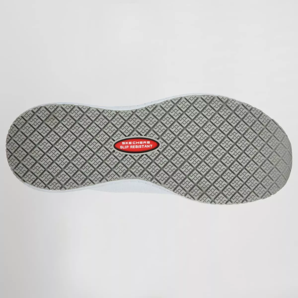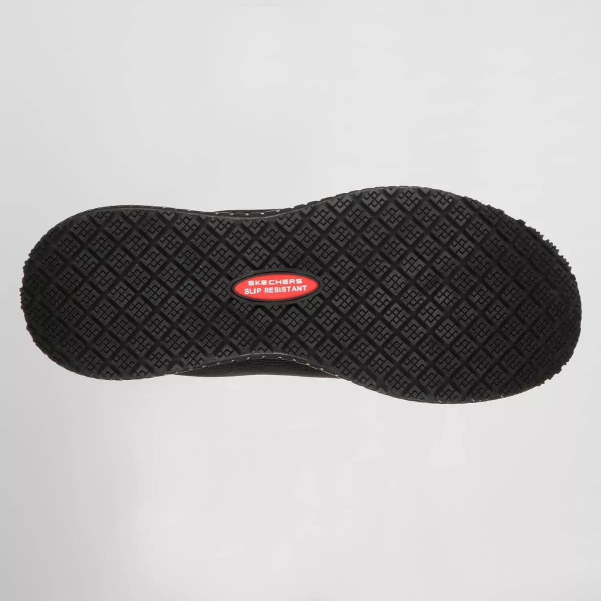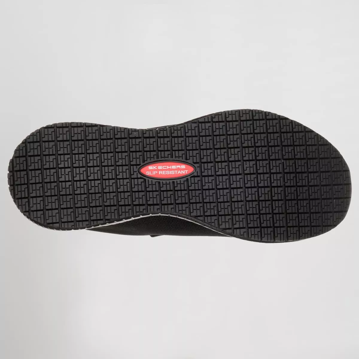 Skechers Cessnock certificata antiscivolo combina uno stile sportivo eccezionale con un comfort illimitato. Presenta la tomaia in mesh liscio, allacciata elastici, cuciture e rivestimento sovrapposto di ornamento.