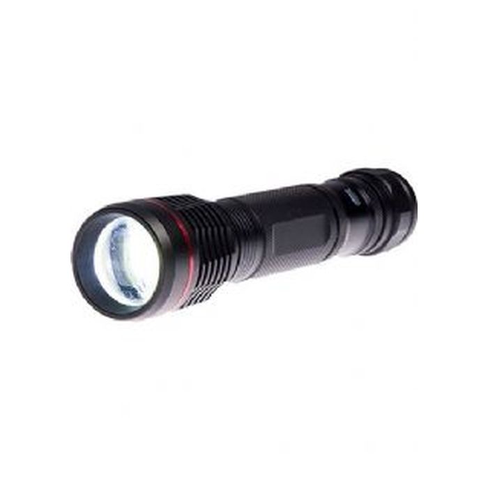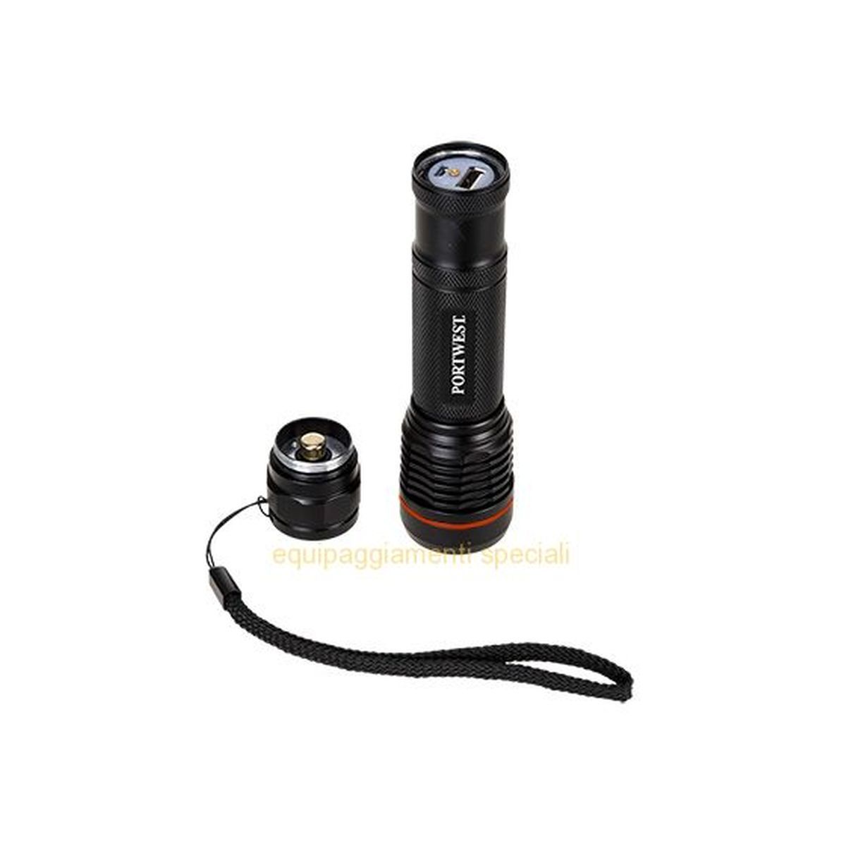 Questa torcia ricaricabile è compatta e leggera. La distanza del raggio e la messa a fuoco sono regolabili con un sistema a torsione. Questa torcia può anche essere utilizzata come un caricabatterie USB di backup con una potenza sufficiente per una ricarica completa del telefono.